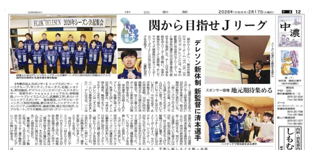 実はこのたび、岐阜県関市を拠点に活動されているFC OK’ DELESUN(デレソン)様の2026シーズン法人スポンサーとして協賛させていただくことになりました!